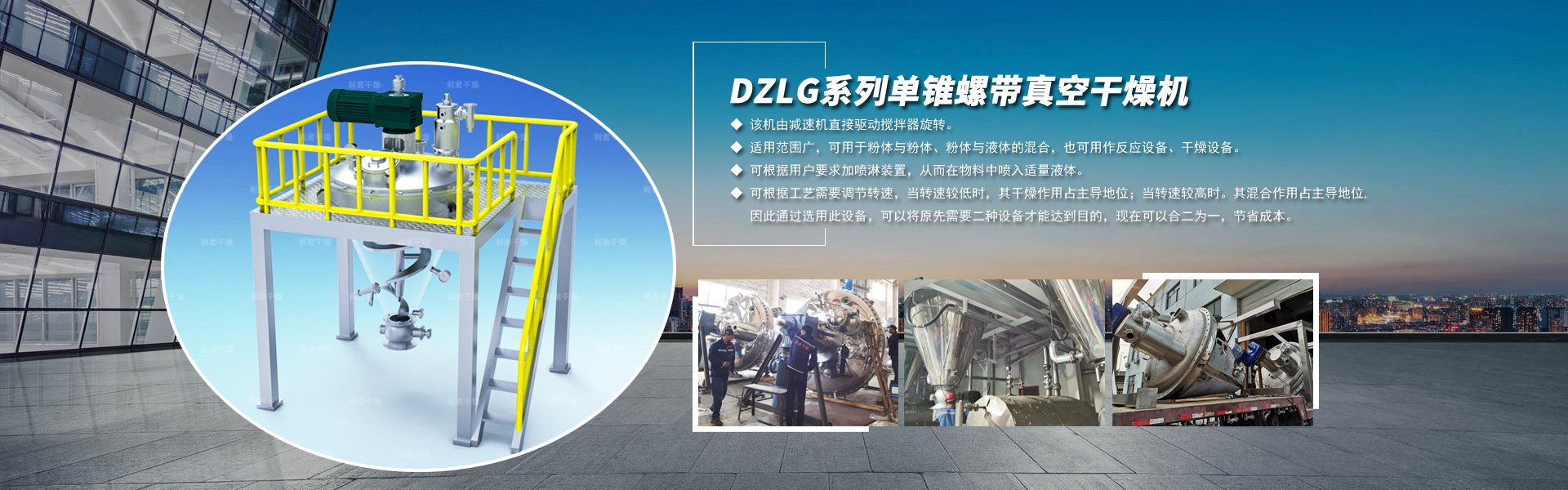 DZLG系列單錐螺帶真空干燥機是一種集干燥、粉碎、混粉為一體的高效多功能全密閉立式真空干燥設備。