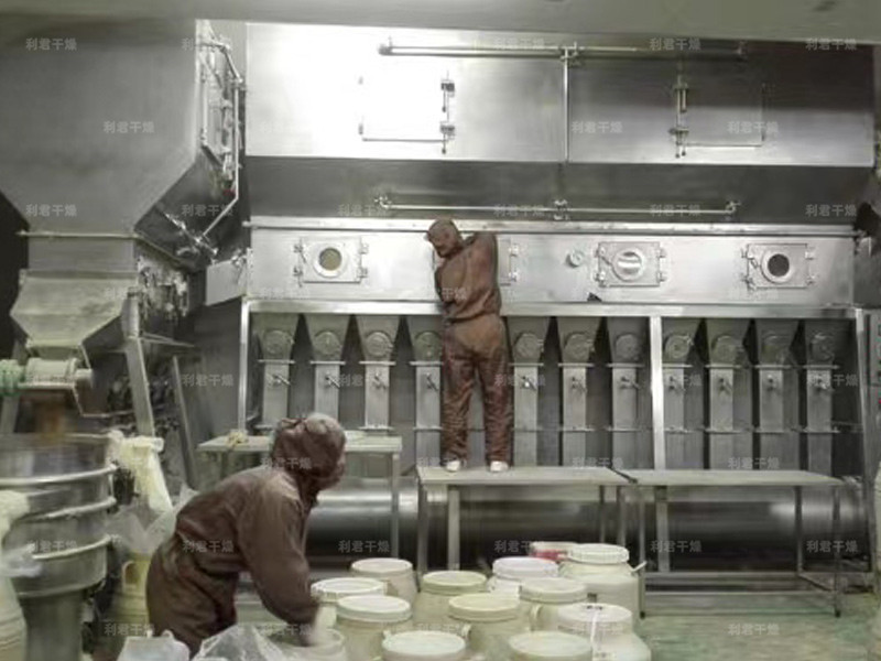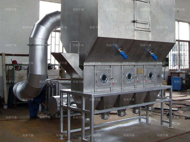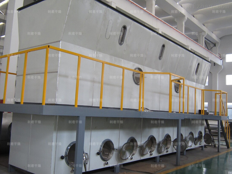 潔凈的熱風(fēng)經(jīng)閥板分配進(jìn)入床體內(nèi),從加料器進(jìn)入的濕物料被熱風(fēng)形成沸騰狀態(tài)。由于熱風(fēng)與物料廣泛接觸,增強(qiáng)了傳熱傳質(zhì)的過(guò)程,因此在較短時(shí)間內(nèi)就可干燥。如用連續(xù)型,物料從床體的一頭進(jìn)入,經(jīng)過(guò)幾十秒至幾分鐘沸騰干燥,自動(dòng)從床體另一頭流出。本設(shè)備一般進(jìn)行負(fù)壓操作。