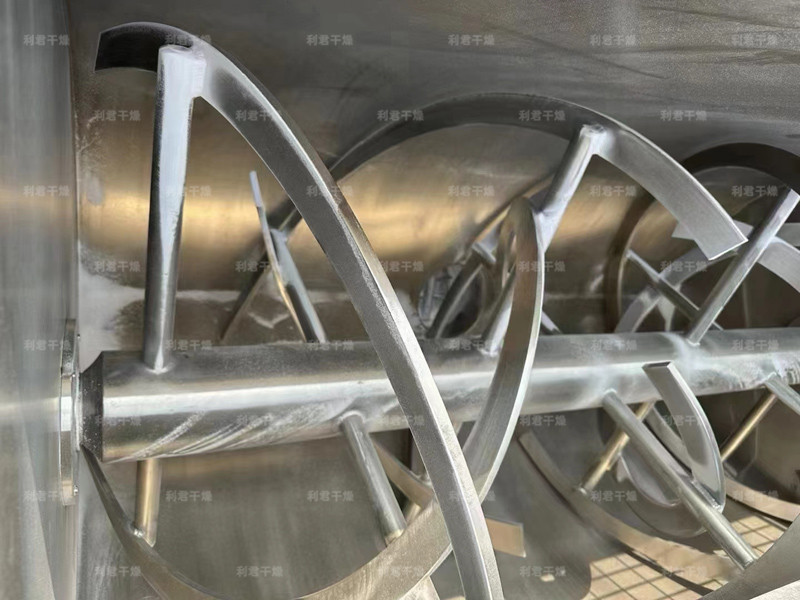 本機(jī)與物料接觸處均采用不銹鋼制造,槳葉與桶身間隙小,混合無(wú)死角,攪料軸兩端設(shè)有密封裝置,能防止物料外瀉。