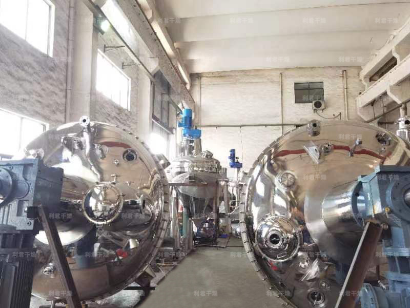 ●真空狀態下操作,在低溫下也有較高的蒸發速率,特別適合熱敏性物料及易氧化物料的干燥,也能適合含有溶劑的物料,并能回收溶劑。